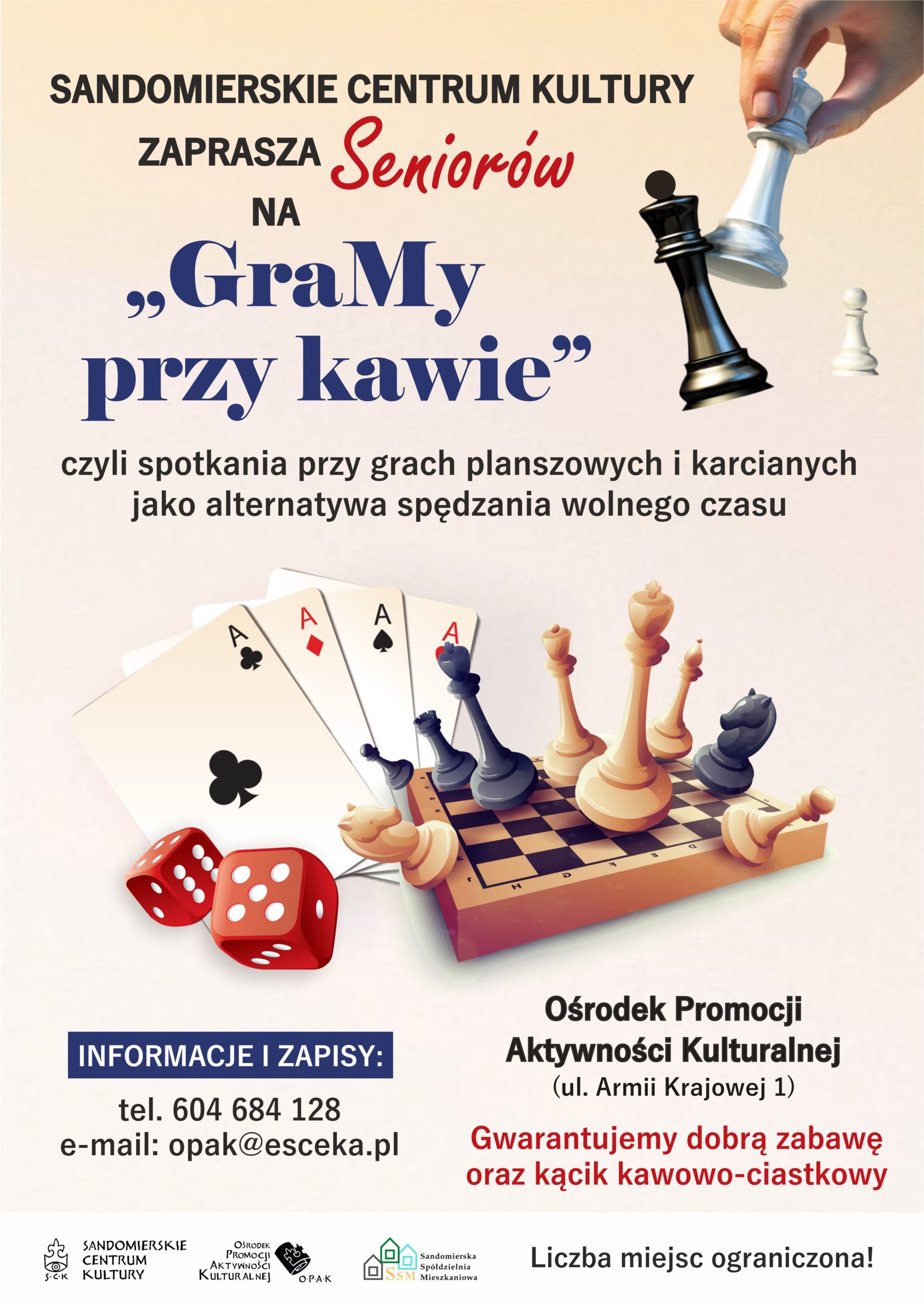 Sandomierskie Centrum Kultury zaprasza Seniorów do skorzystania z oferty „GraMy przy kawie” – czyli spotkania przy grach planszowych i karcianych jako alternatywa spędzania wolnego czasu oraz pokazanie, że gry mogą być jedną z form aktywności również dla osób dorosłych.