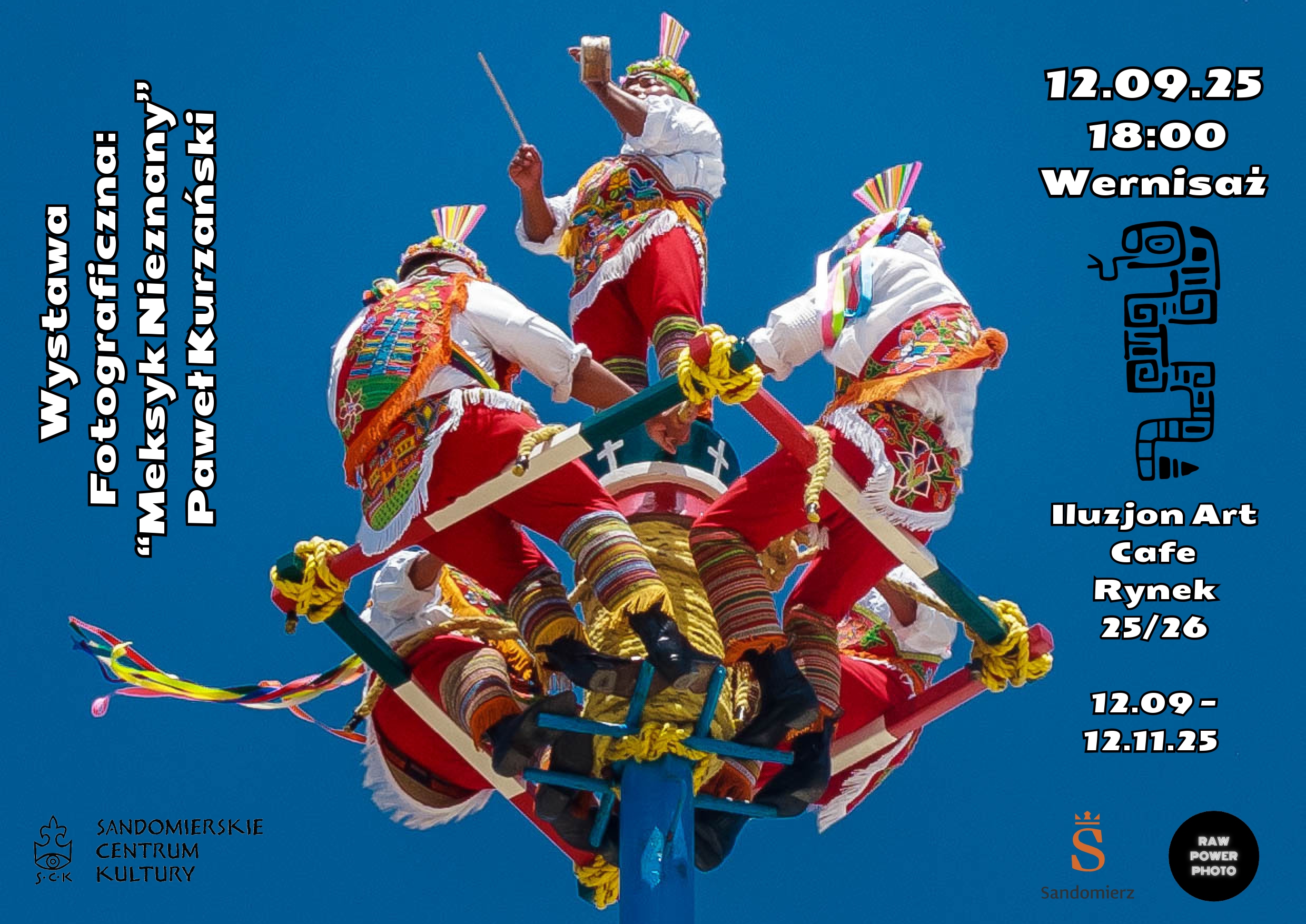 serdecznie zapraszamy na wyjątkowy wernisaż w Iluzjon Art Cafe, który odbędzie się 12 września 2025 (piątek) o godz. 18:00. Będziemy mogli podziwiać wystawę fotograficzną pt. „Meksyk Nieznany” autorstwa Pawła Kurzańskiego.
