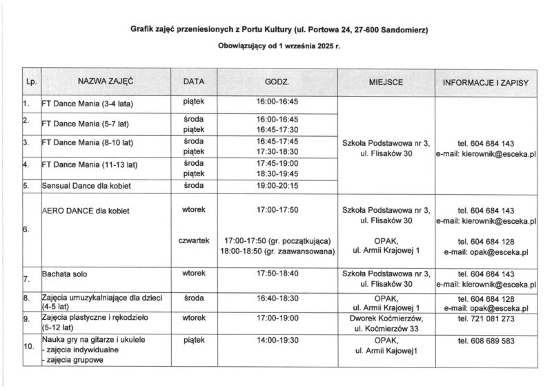 - Regulamin uczestnictwa w zajęciach Portu Kultury