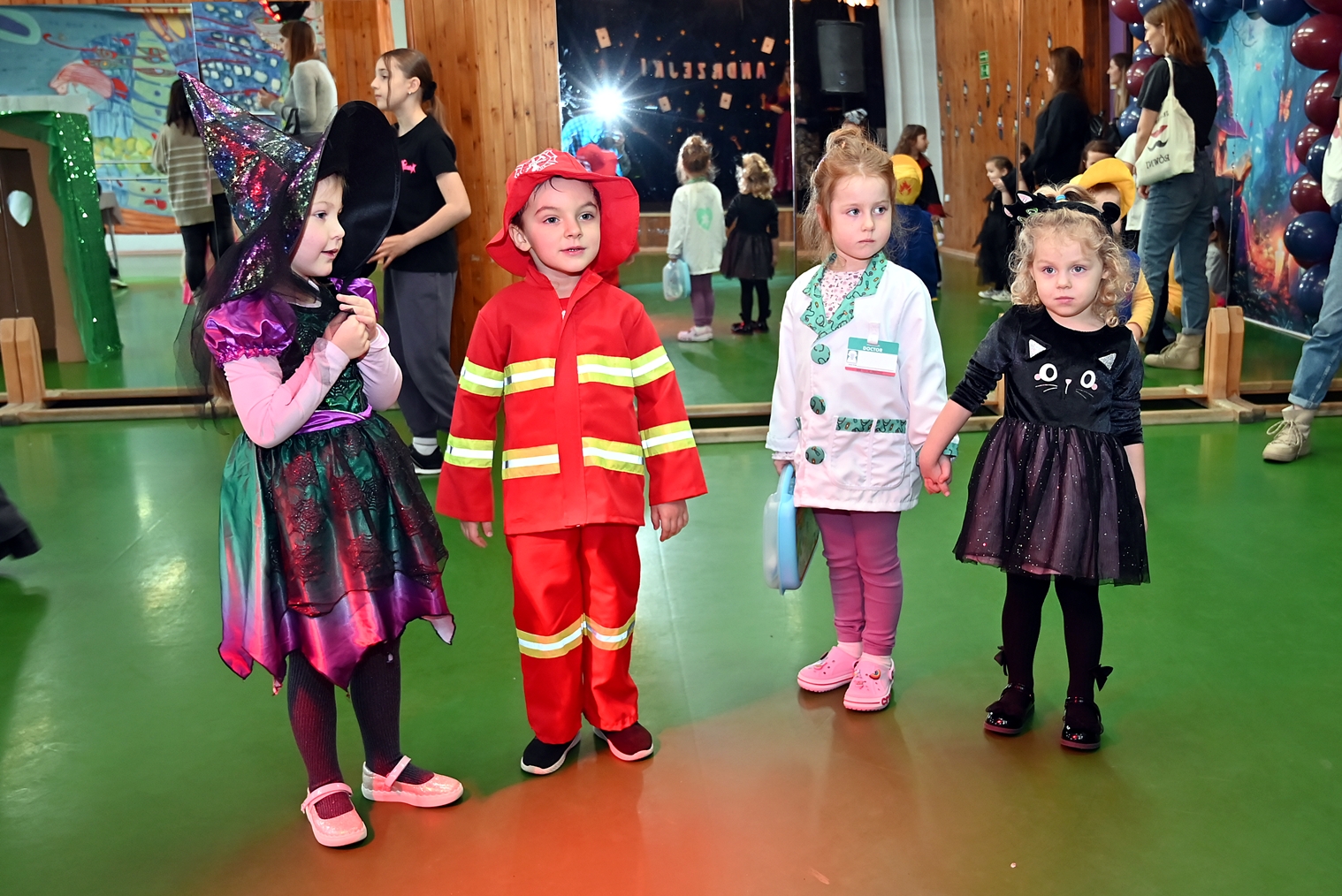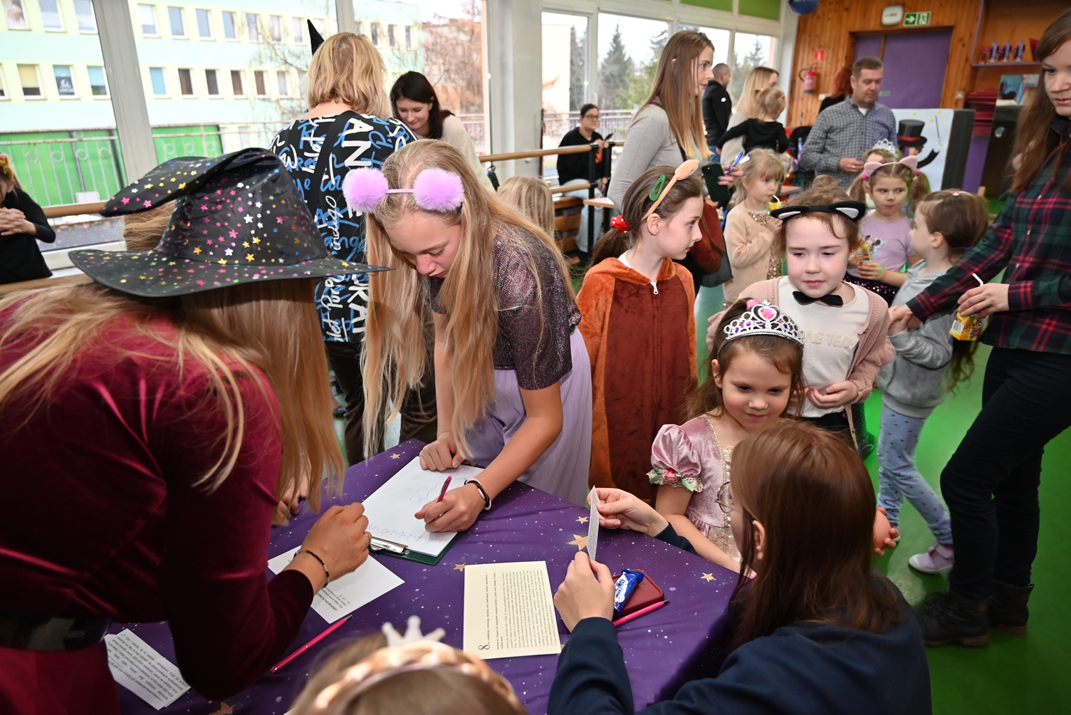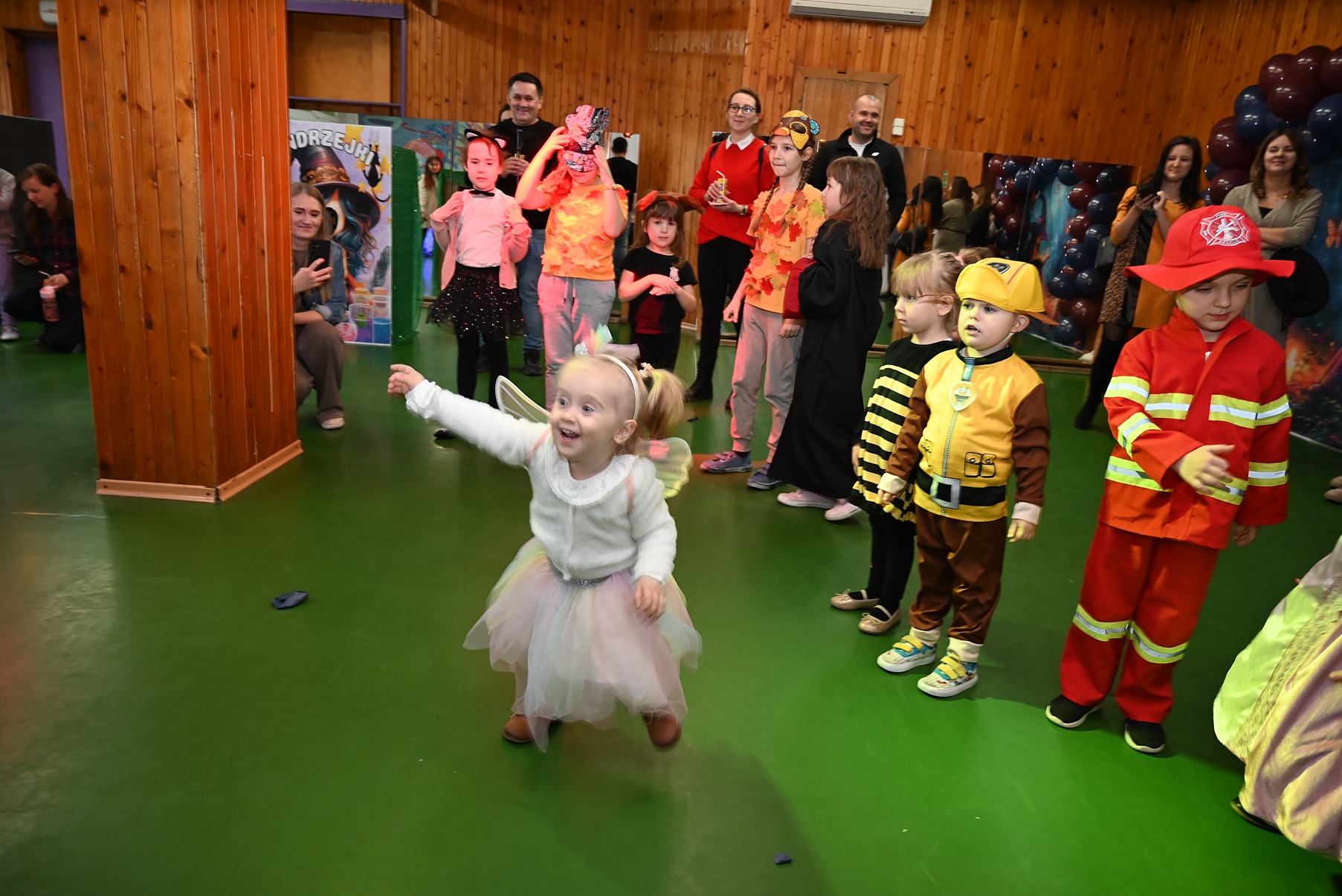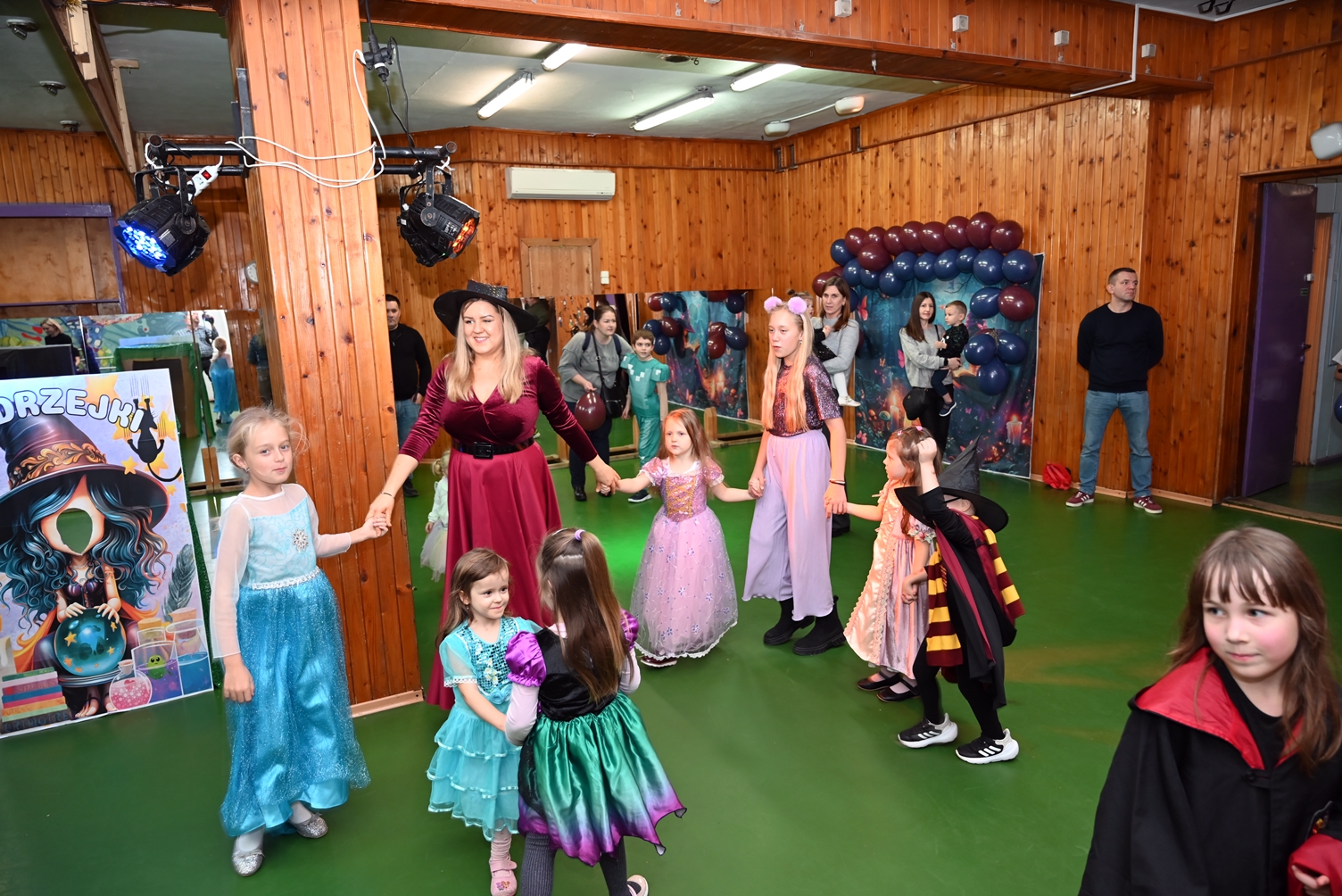Bal dla dzieci rozpoczął się punktualnie o 14:00 i od pierwszych chwil emanował radością. Wróżby, tańce, wspólna zabawa i mnóstwo śmiechu sprawiły, że w sali panowała prawdziwie magiczna aura. Dzieci zachwyciły nas bajecznymi przebraniami – pojawiły się księżniczki, superbohaterowie, urocze zwierzaczki (absolutnym przebojem okazała się kapibara!) oraz piękna personifikacja jesieni.
