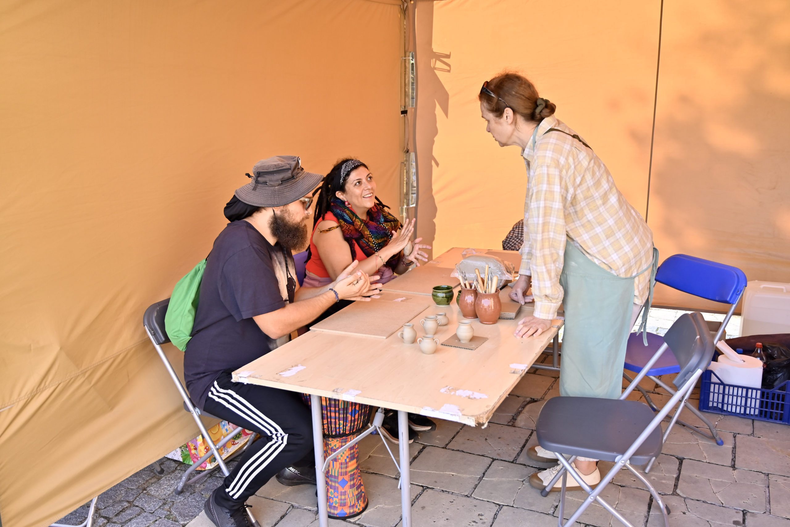 Pierwszym punktem programu był pokaz toczenia na kole garncarskim „Formy z natury”, zrealizowany w ramach projektu „Ceramika z duszą – dziedzictwo Kazimierza Radulskiego”. Monika i Robert Jehn-Olszewscy z pracowni JehnCeramics wprowadzili publiczność w świat gliny, prezentując tajniki tradycyjnego garncarstwa. Uczestnicy mogli nie tylko obserwować pracę mistrzów, ale także samodzielnie spróbować sił w tworzeniu naczyń i unikatowych form.