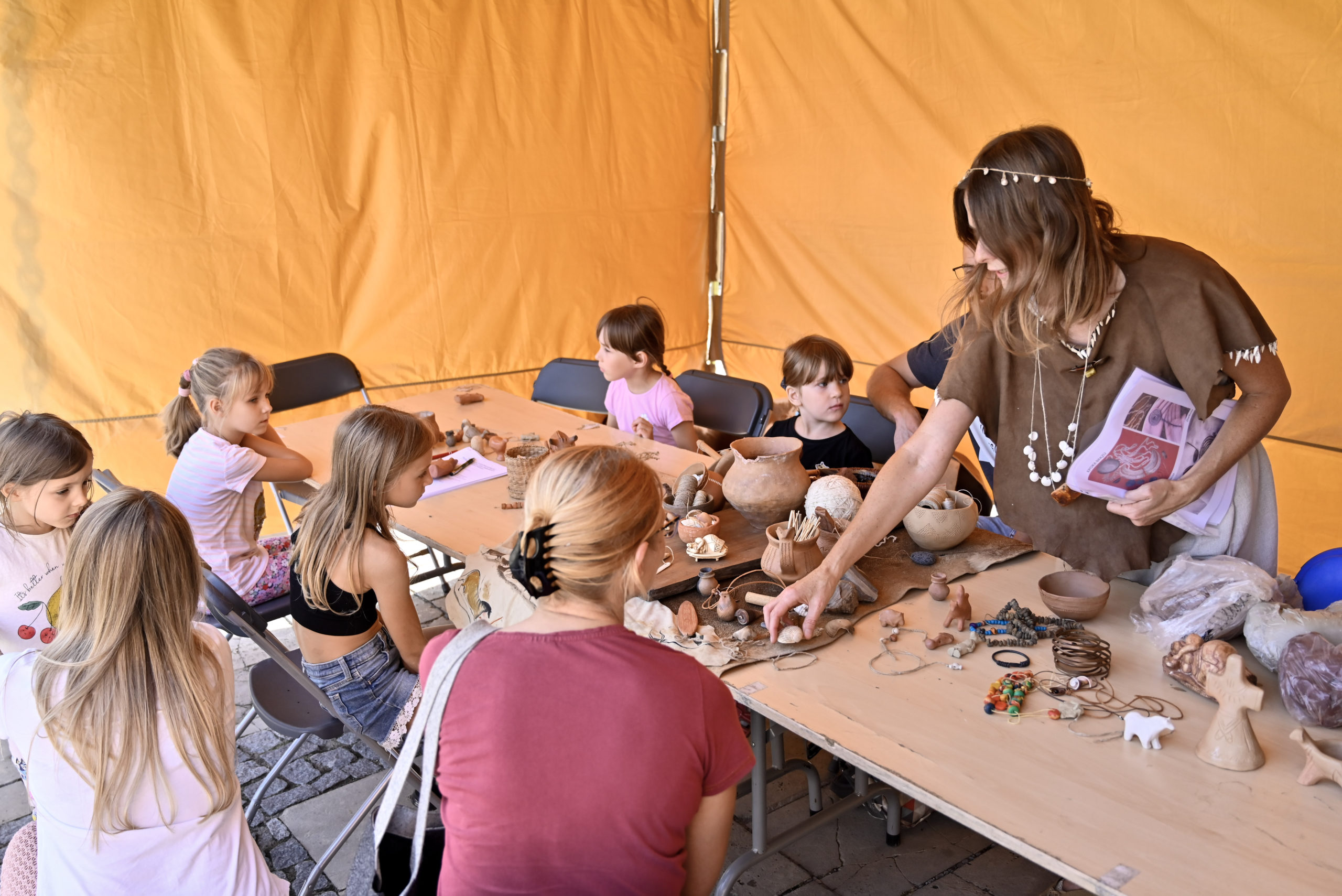 Kolejną atrakcją były warsztaty biżuterii pradziejowej, które poprowadzili Monika i Zbigniew Bajka z Pracowni Archeologicznej „Trzy Epoki”. Opowieści o dawnych ozdobach, repliki historycznych przedmiotów zdobniczych oraz możliwość stworzenia własnej biżuterii sprawiły, że każdy uczestnik mógł na chwilę przenieść się w świat pradawnych tradycji. Na zakończenie odbył się konkurs z nagrodami ufundowanymi przez Urząd Miejski w Sandomierzu, który dostarczył dzieciom i młodzieży wielu emocji i radości.