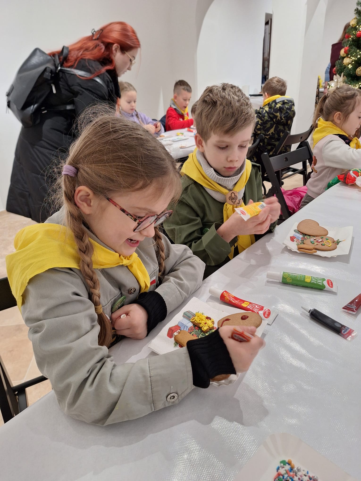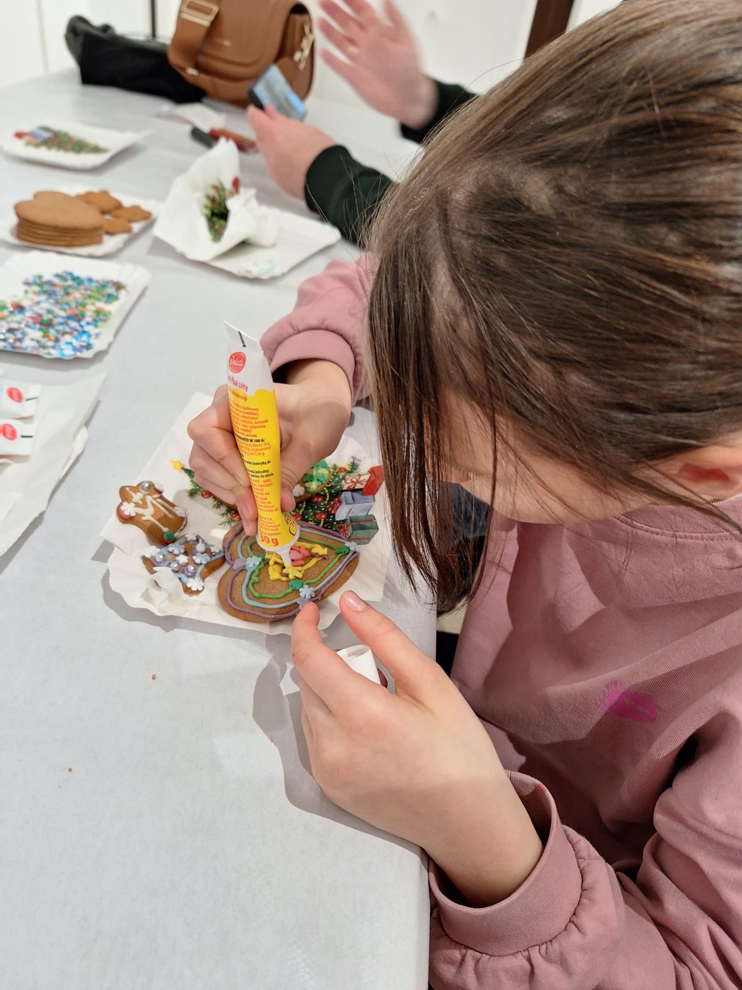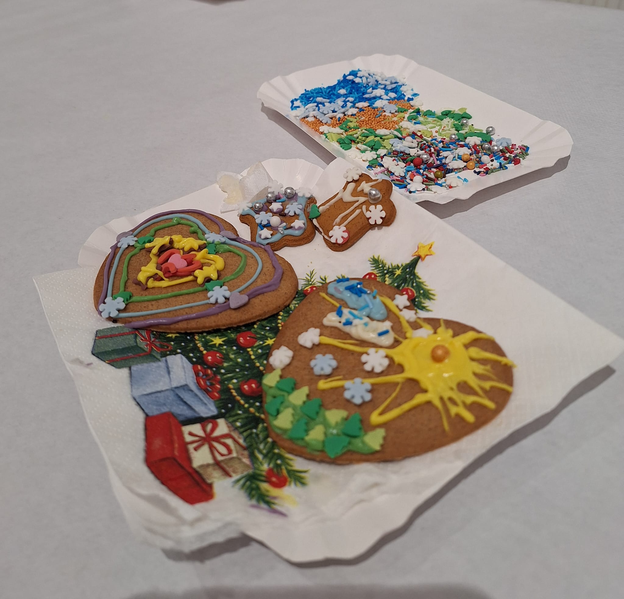 Równolegle, w Kamienicy Oleśnickich, zrealizowano warsztaty „Lukrowane historie”, poświęcone zdobieniu pierniczków. Uczestnicy, wykorzystując kolorowe lukry i świąteczne motywy, stworzyli oryginalne, ręcznie dekorowane wypieki, które wprowadziły wszystkich w atmosferę nadchodzących świąt.
