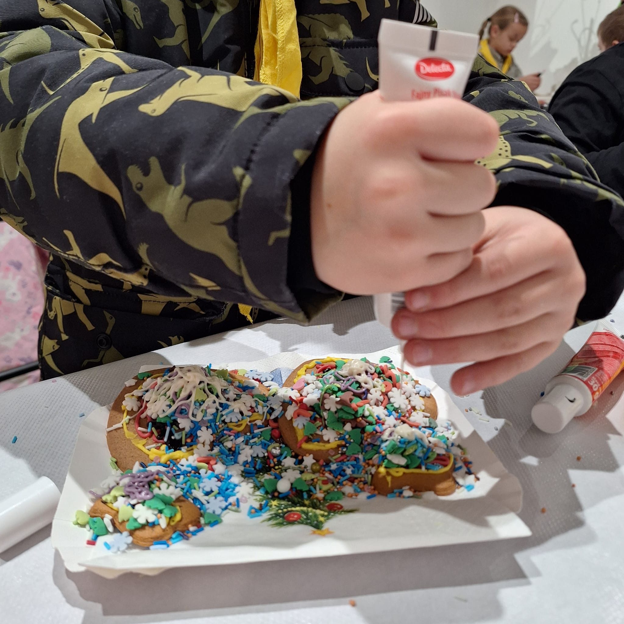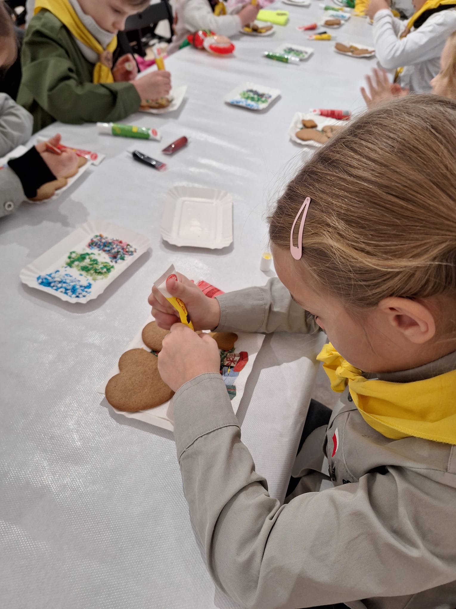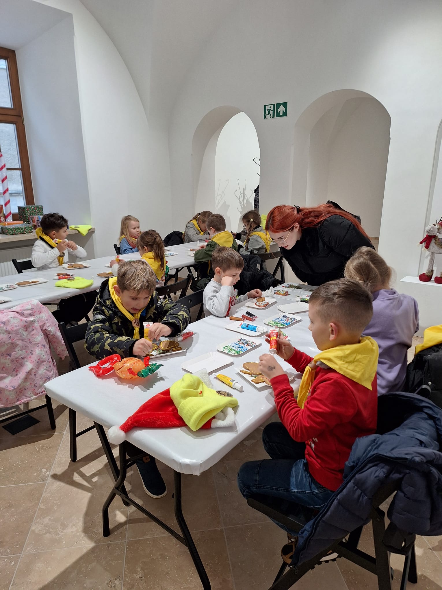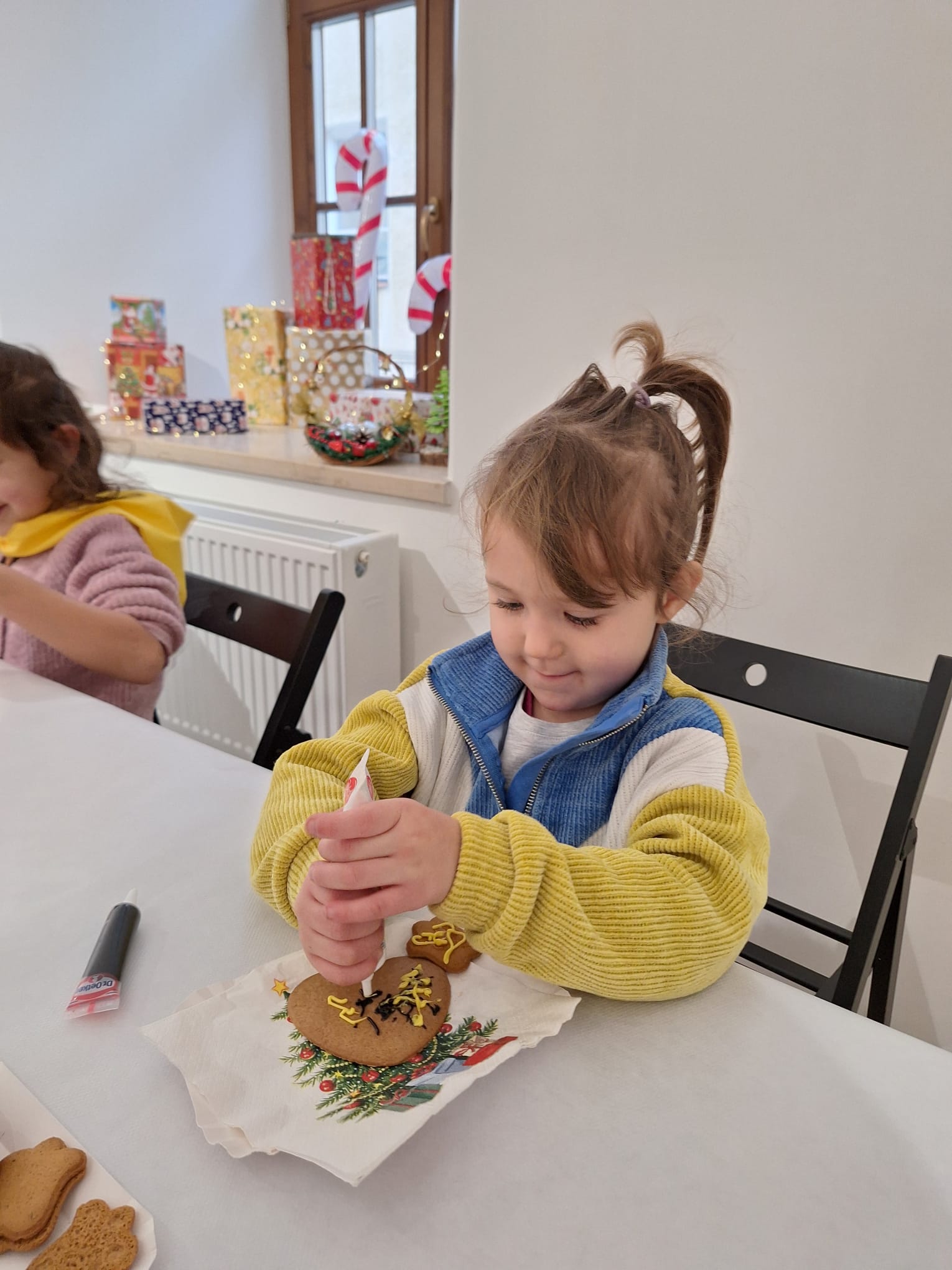 Równolegle, w Kamienicy Oleśnickich, zrealizowano warsztaty „Lukrowane historie”, poświęcone zdobieniu pierniczków. Uczestnicy, wykorzystując kolorowe lukry i świąteczne motywy, stworzyli oryginalne, ręcznie dekorowane wypieki, które wprowadziły wszystkich w atmosferę nadchodzących świąt.
