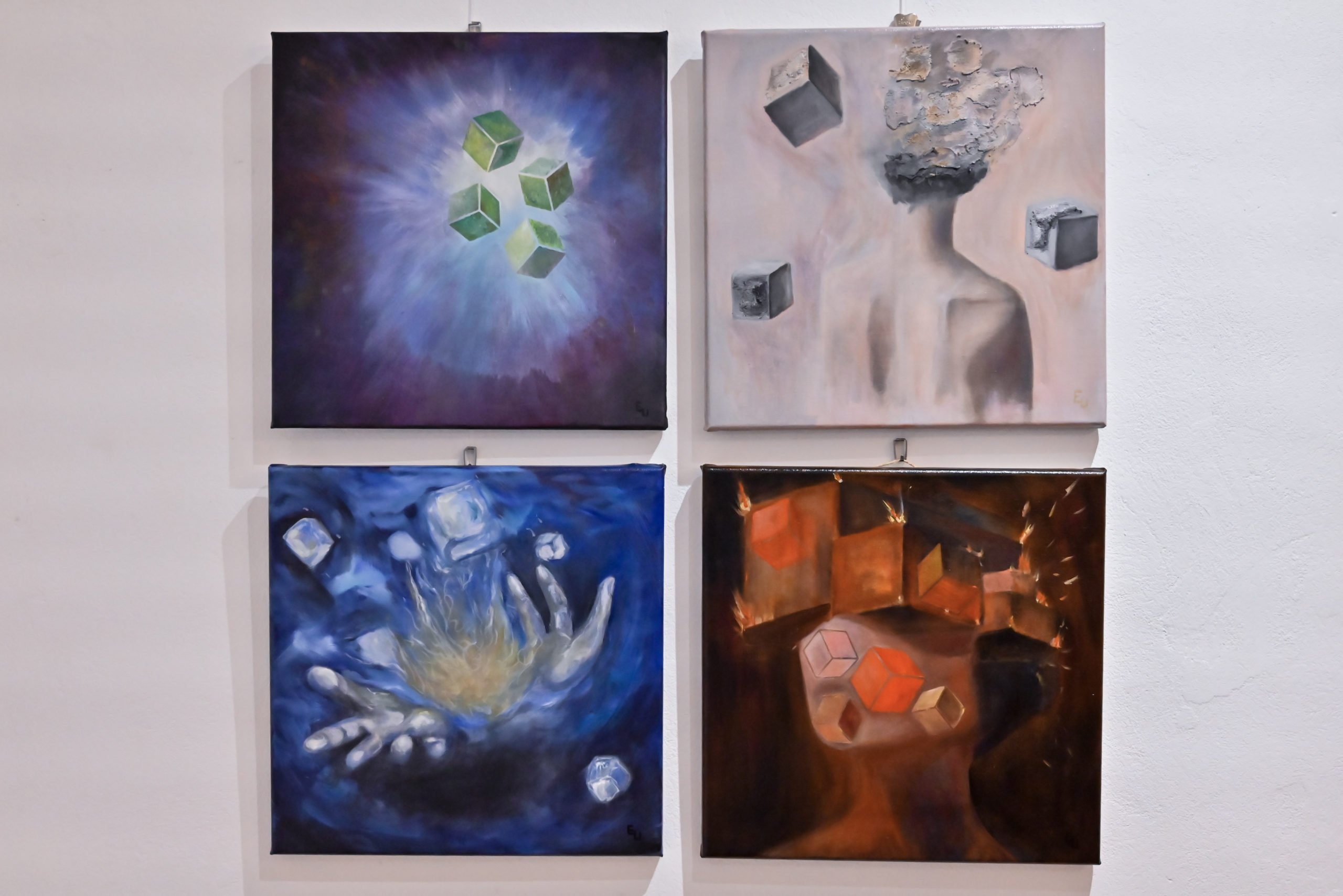 Swoje prace zaprezentowało trzynastu malarzy, z których każdy przygotował cztery obrazy w formacie 40 x 40 cm. Zestawione razem stworzyły one spójną, intrygującą całość, a zarazem – dzięki indywidualnemu charakterowi – funkcjonowały jako osobne, pełnowartościowe dzieła sztuki. Publiczność miała tym samym możliwość odkrywania bogactwa różnorodnych postaw twórczych, a jednocześnie dostrzegania harmonii, jaka z nich wypływa.