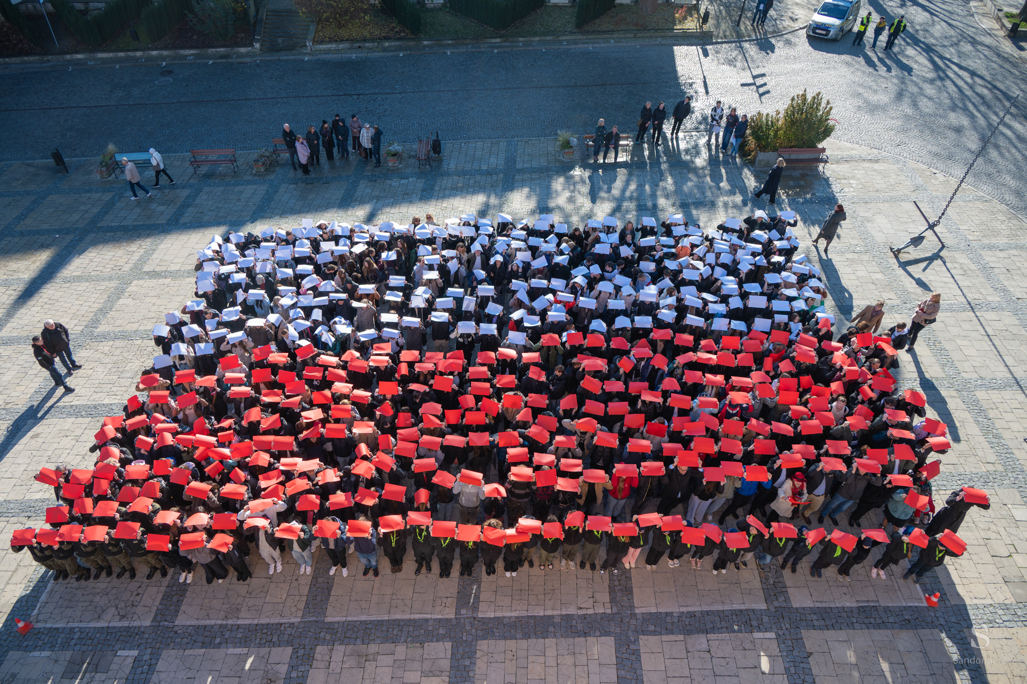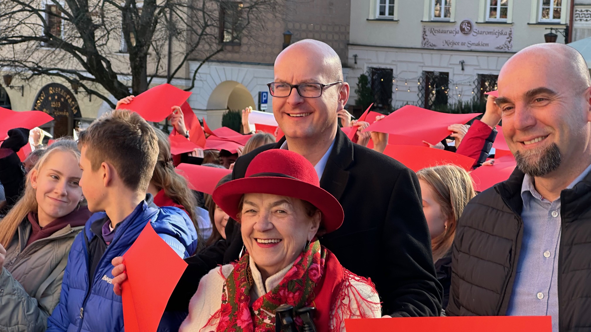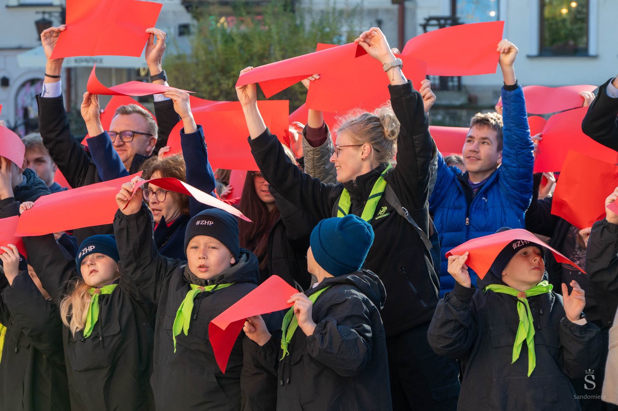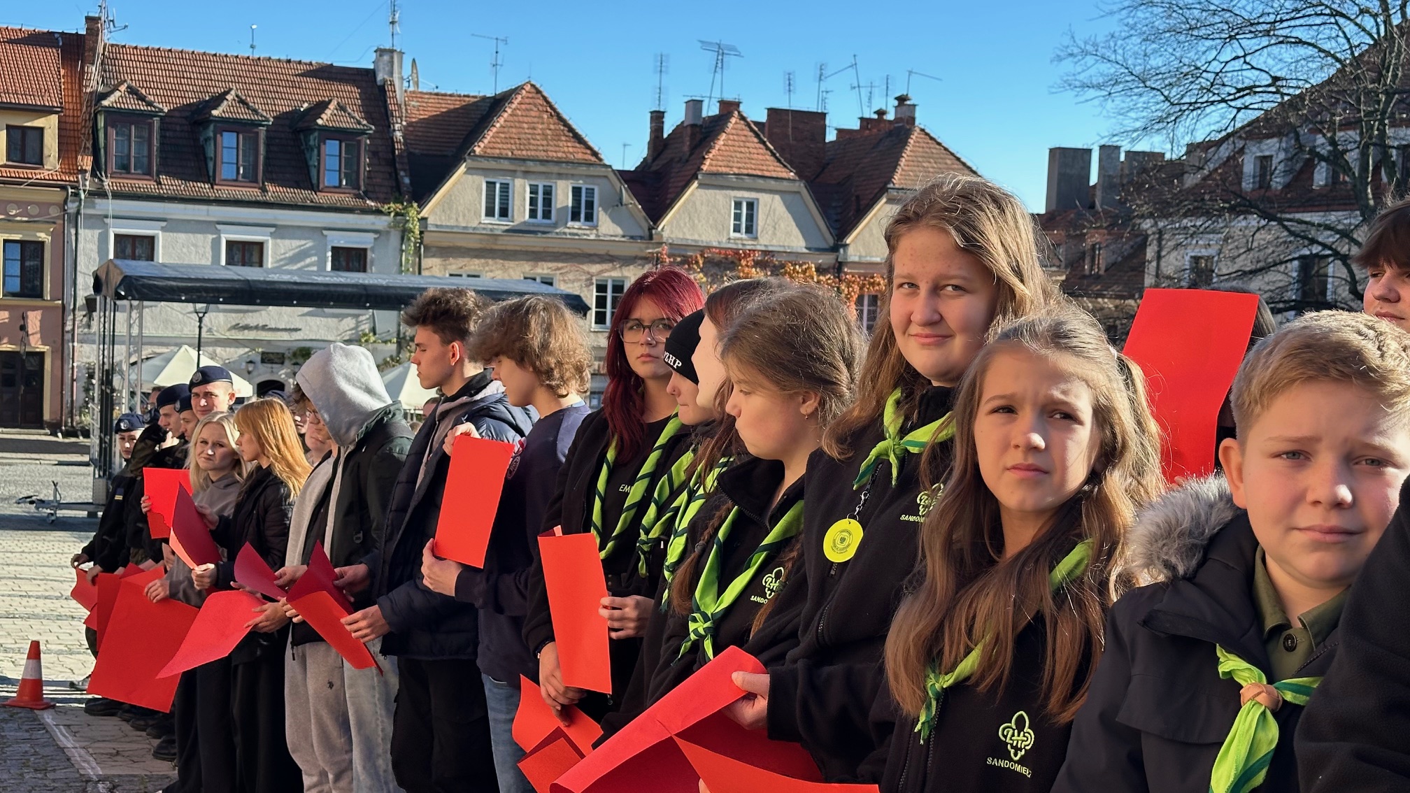 w piątek, 7 listopada 2025, na sandomierskim Starym Mieście odbyła się kolejna edycja patriotycznego happeningu „Żywa Flaga”, która tradycyjnie zgromadziła liczne grono uczestników. W wydarzeniu wzięło udział około 550 osób, które wspólnie utworzyły biało-czerwoną flagę oraz odśpiewały hymn Polski..